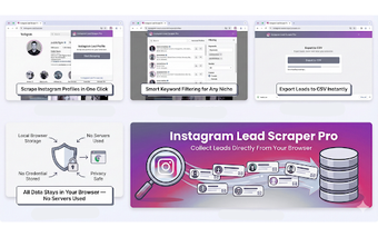 Các tính năng chính bao gồm hệ thống lọc từ khóa để nhắm mục tiêu ngách, phát hiện giới tính dựa trên tên và các tùy chọn xuất dữ liệu thuận tiện ở định dạng CSV hoặc TXT. Tiện ích mở rộng hoạt động bằng cách tải các hồ sơ khi người dùng cuộn qua các trang Instagram, đảm bảo rằng tất cả việc thu thập dữ liệu được thực hiện cục bộ trong trình duyệt mà không có bất kỳ tương tác nào với các quy tắc tự động hóa của Instagram. Thích hợp cho các freelancer, nhà tiếp thị và nhà nghiên cứu, Instagram Lead Scraper Pro đơn giản hóa nhiệm vụ tổ chức và quản lý khách hàng tiềm năng trên Instagram.